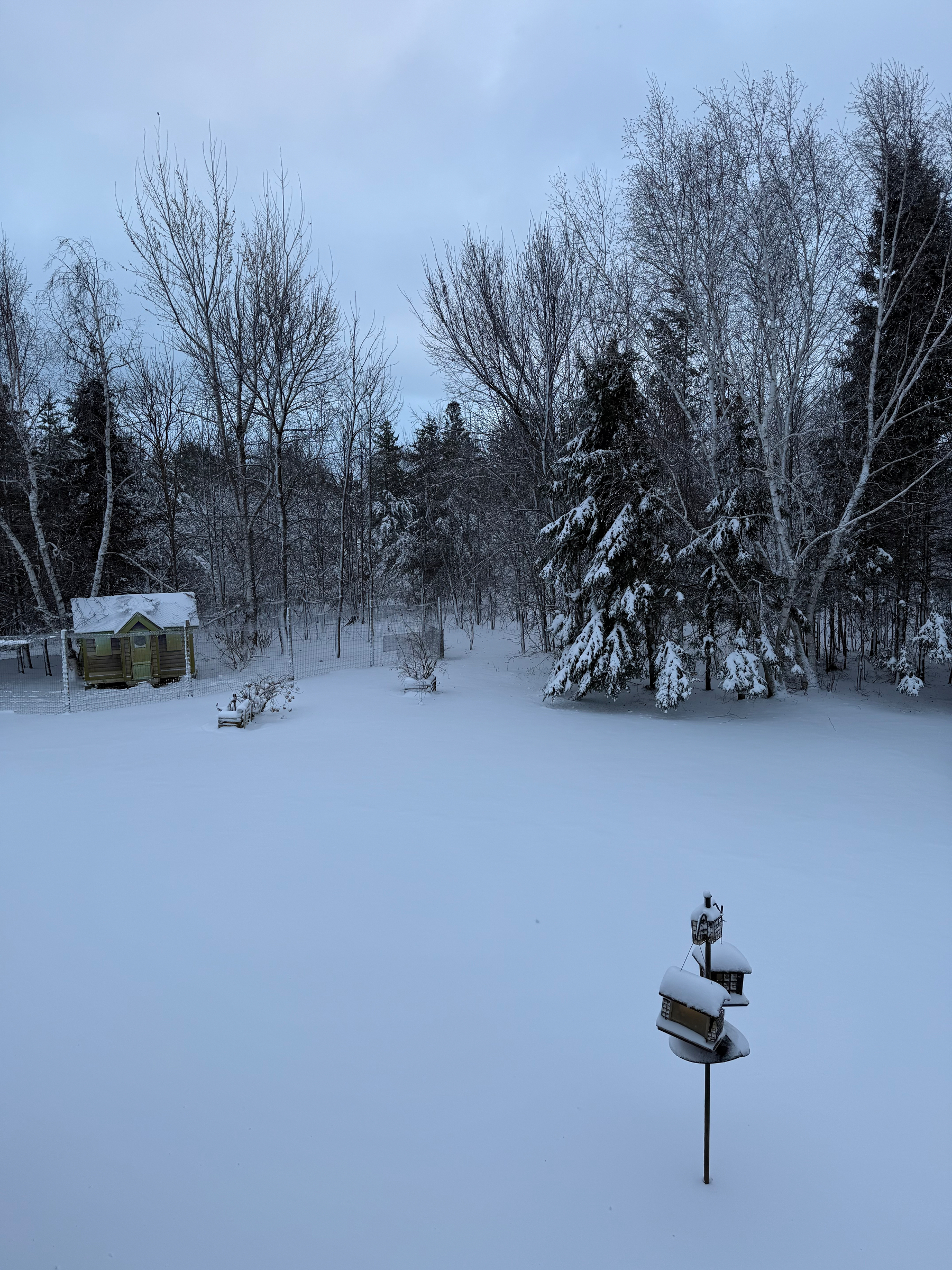 View from my window. Yesterday morning there wasn’t a snowflake in sight. Snow day for the kids—or as the school calls it, “e-learning.” 🙄